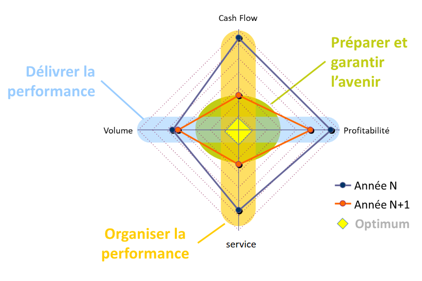 Evolution toward the structuring phase marks an important conceptual rupture with the emergence of the "ATPERF square", an organizational framework structured around four strategic axes: Productivity, Costs, Service, and Cash. This structuring responds to a need for operationalization and communication of performance issues to field teams and general management.